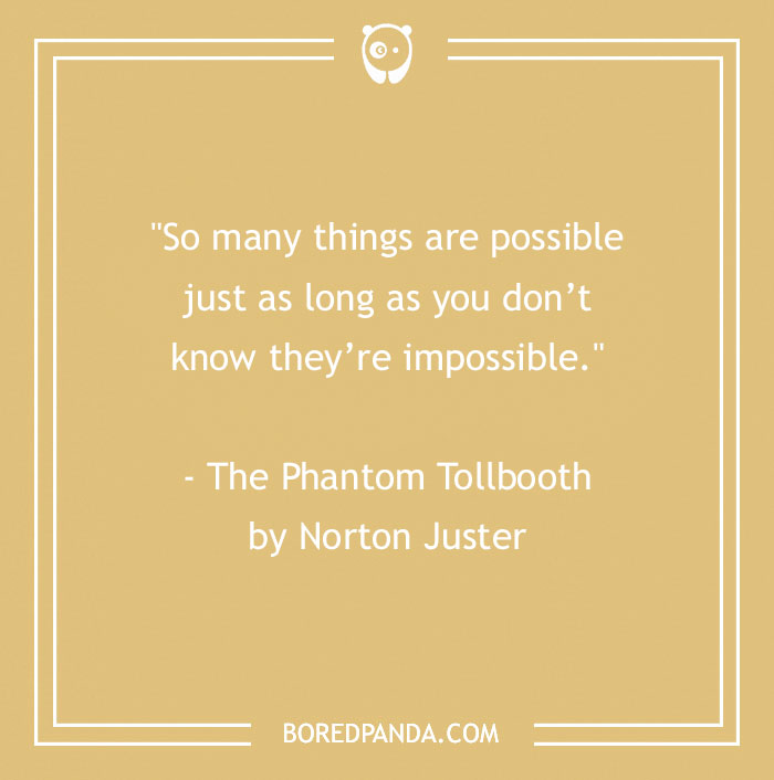 "So many things are possible just as long as you don’t know they’re impossible." - The Phantom Tollbooth by Norton Juster