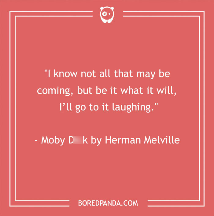 "I know not all that may be coming, but be it what it will, I’ll go to it laughing." - Moby Dick by Herman Melville