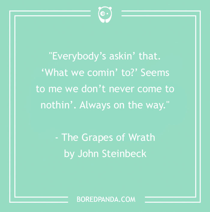 "Everybody’s askin’ that. ‘What we comin’ to?’ Seems to me we don’t never come to nothin’. Always on the way." - The Grapes of Wrath by John Steinbeck