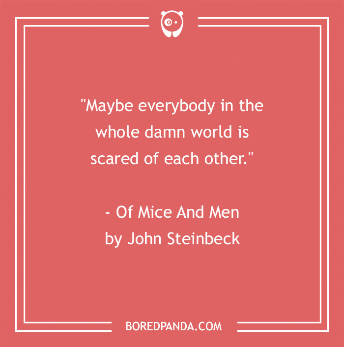 "Maybe everybody in the whole damn world is scared of each other." - Of Mice And Men by John Steinbeck