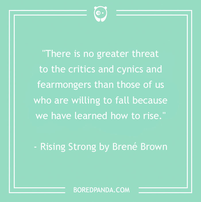 "There is no greater threat to the critics and cynics and fearmongers than those of us who are willing to fall because we have learned how to rise." - Rising Strong by Brené Brown
