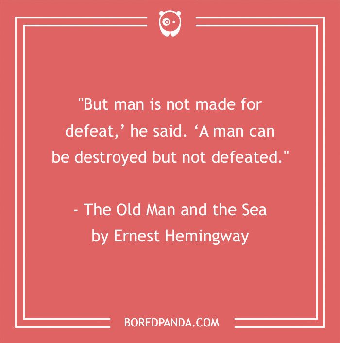 "But man is not made for defeat,’ he said. ‘A man can be destroyed but not defeated." - The Old Man and the Sea by Ernest Hemingway