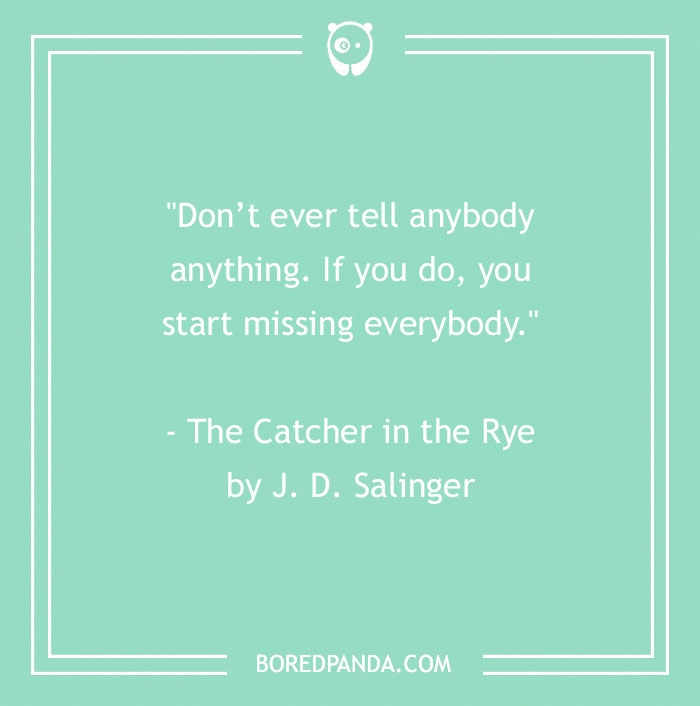 "Don’t ever tell anybody anything. If you do, you start missing everybody." - The Catcher in the Rye by J. D. Salinger