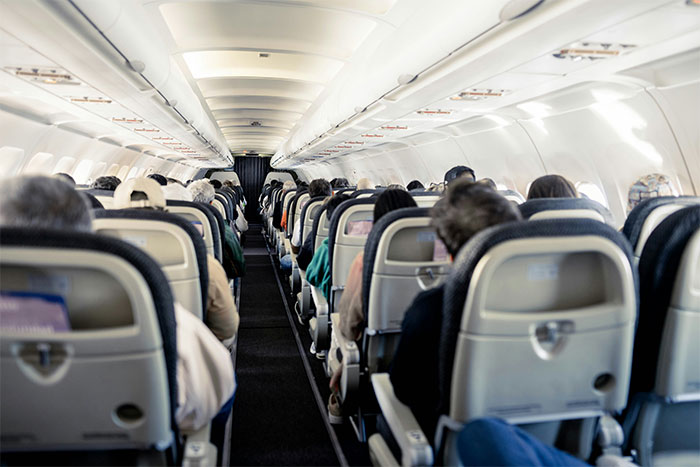 When boarding, it’s recommended to greet the flight crew with a pleasant and polite “hello.” And if you’re going to be listening to music or watching a movie, make sure you have earbuds, so everyone around you won’t be subjected to your choice in entertainment.