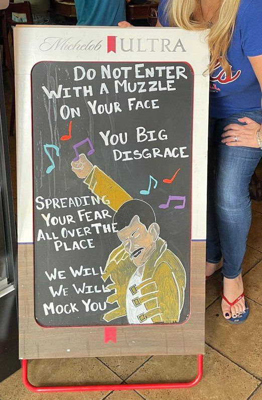 Load More Replies...Buddy, you're a boy, make a big noise, sneezing out loud, wipe your nose with your bare hand, yikes! No mask on your face, you big disgrace, spreading your germs all over the place. Sing it, we will, we will mock you! Louder! We will, we will mock you!