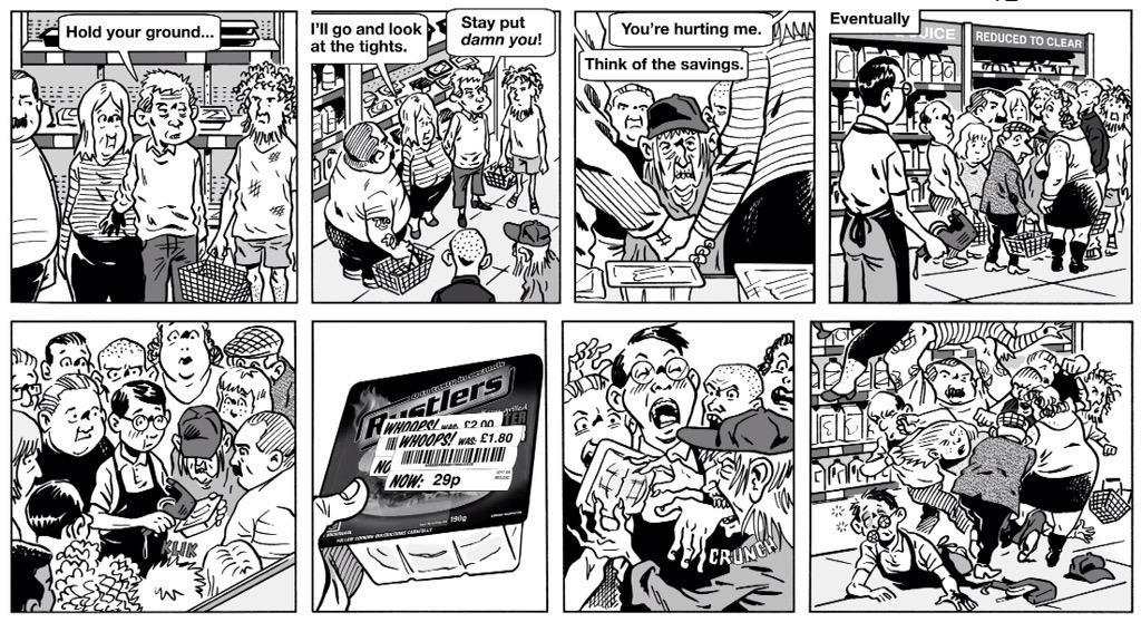 "Boss, our budget is out of control - where can we cut back?" "I know - let's cancel garbage pick-up. We'll just give a little to each customer and make them deal with it..."