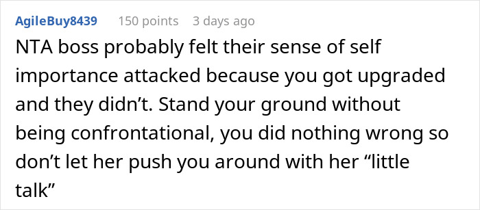 And while this does no harm to anyone, it soon turned out that the author’s boss got seriously offended by the fact she didn’t get to sit in the upgraded seat.