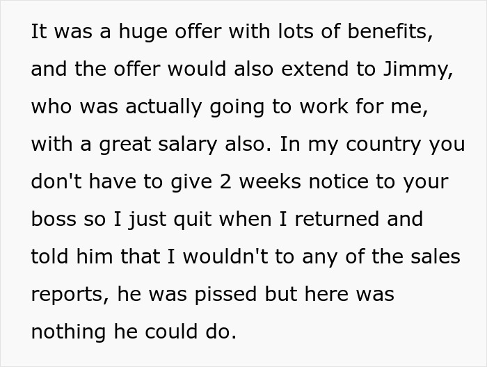 Now, the moment Holiday_Control7243 got back from holiday, the boss told him he was no longer allowed to take time off at the end of the month ever again. Malicious compliance followed.