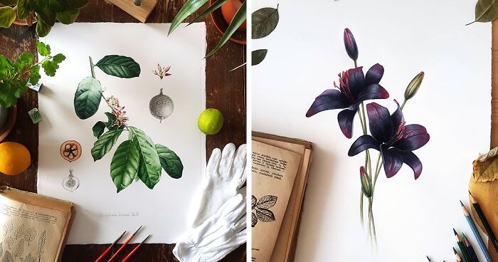 I work with watercolors on paper, but also with wood and digital illustrations. I love painting flowers, fruits, and vegetables. Recently I have been working on pieces focusing on plants that were later added to the Lithuanian Red Book. Some of my artworks are exhibited at the local Kairenai Botanical Garden in Lithuania.