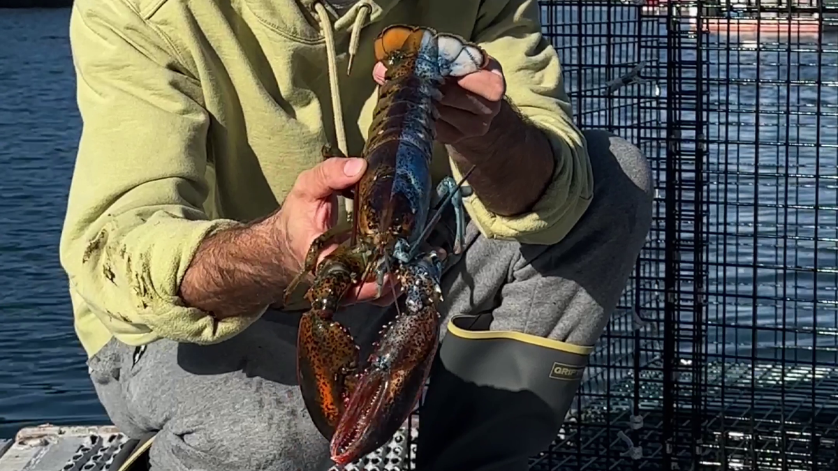 A lobster fisherman caught a uniquely beautiful lobster, which he named Bowie, as it turned out to be half male and half female