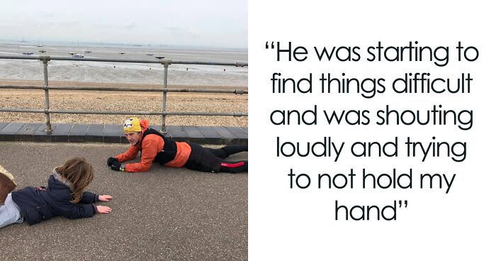 The mother told Bored Panda: “I took my son for a little walk along our local seafront. He loves the walk, but due to sensory issues, he struggles to turn around and walk in the other direction. He was starting to find things difficult and was shouting loudly and trying to not hold my hand. We received some tuts and stares—we’re used to this, so carried on—and then things just became too much and my son slumped to the floor. A few runners came past and then this particular runner stopped and said, hi, and asked me if my son was having a tantrum, I just said yes and with that he started to chat to my son, asking his name, etc. At this point I explained that my son would probably not understand as he is autistic with other special needs. At this point the runner dropped to the floor, laid opposite my son, and started just chatting. My son loves this type of interaction so then he stood up and put his hand out to hold Ian the runner’s hand. Ian and I chatted for a bit and then he offered to walk us back to the car”