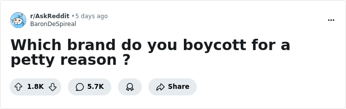 Redditors have recently been discussing petty grudges they hold against various companies that have inspired them to boycott. From overcharging hungry guests to refusing to let desperate parents use their bathroom, enjoy reading through these mistakes that caused brands to lose customers. And be sure to upvote the ones that inspire you to join in on the boycotting!