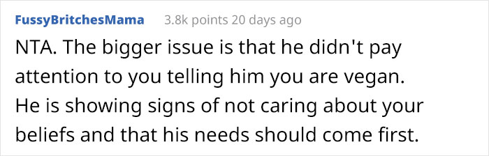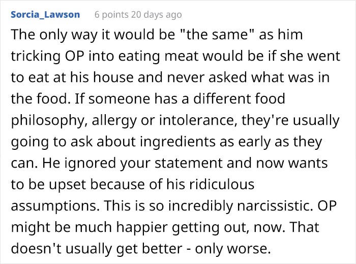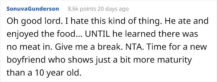 Blamed for “tricking” him into her meatless diet, the author of the story turned to the ‘Am I The [Jerk]‘ subreddit to see if she’s as evil as her boyfriend claims her to be.