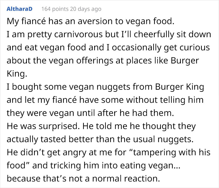 Woman Gets Blamed By Her Boyfriend For ‘Tricking’ Him Into Eating Vegan Food, Asks The Internet If She’s The Jerk Here