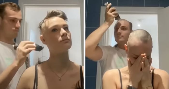 Boyfriend Shaves Girlfriend’s Head Due To Alopecia Only To Shave His Own Immediately