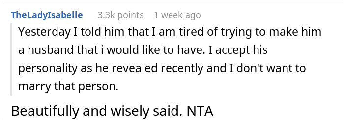 That’s how this redditor who wished to stay anonymous, felt four months before her wedding. It wasn’t the fault of pre-wedding nerves, but rather the questionable behavior of her fiancé. Tired of making him a husband that she wanted to have, she decided she didn’t want to marry that person anymore.
