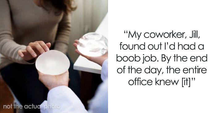 The Reddit user explained that she got breast implants for a very serious reason. She had cancerous cells in her breasts, underwent a bilateral mastectomy procedure, and ended up with two large scars on her torso. The woman completely lost her confidence in herself and barely left her home. The implants helped her feel powerful and attractive again. However, when her co-worker Jill found out that she had them, she started up a barrage of ‘jokes’, and harassment.