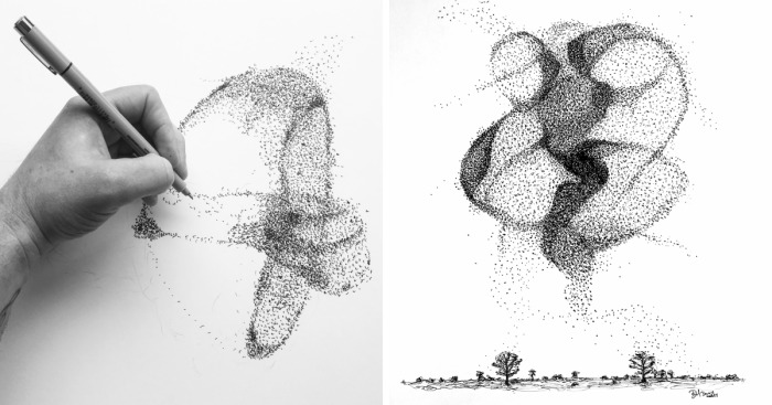 Breathtaking Starling Murmurations Put To Paper Using Scribbles And Dots By Scottish Artist