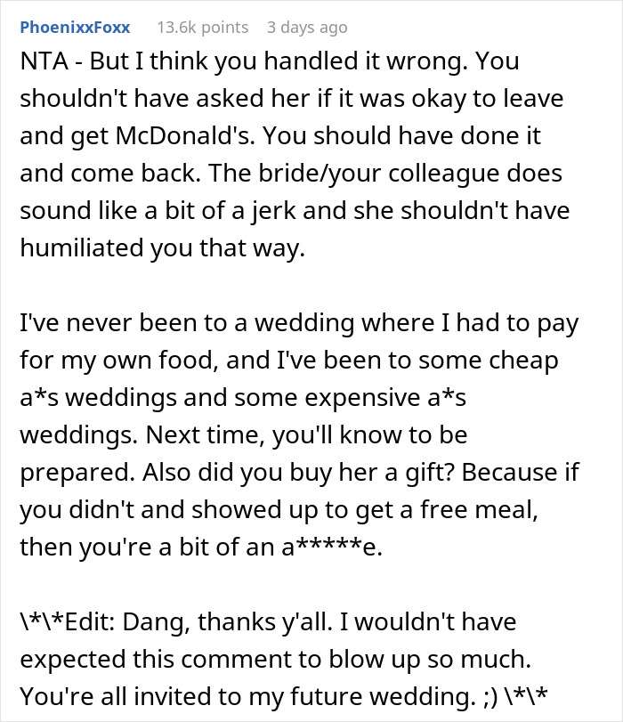 “Am I A Jerk For Leaving A Wedding To Eat At McDonald’s?”: Bride Lied To Her Guest When She Told Her She Wouldn’t Have To Pay For Anything At The Wedding