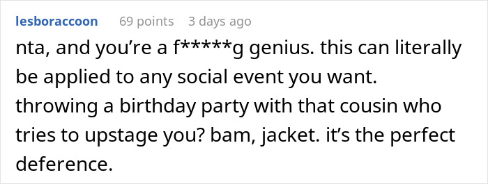 The OP also shared that while the jacket wasn’t on display during the wedding, it was in the venue and ready for use if need be, and added that other guests found the jacket idea to be quite funny.