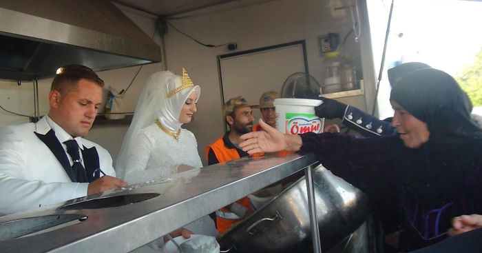 Turkish Bride & Groom Spend Their Wedding Day Feeding 4,000 Refugees