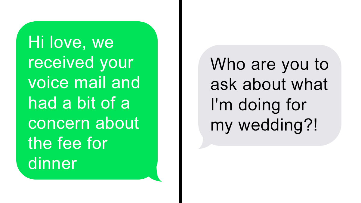 Load More Replies...This article is ridiculous in interviewing a "luxury" wedding planner. Of course she has never heard of someone requesting guests to pay for their dinner🙄 Is it tacky? Yes, but my god interview a wedding planner that would be hired by a family that didn't have a trust fund or didn't have anyone with a C-level title in the immediate family.