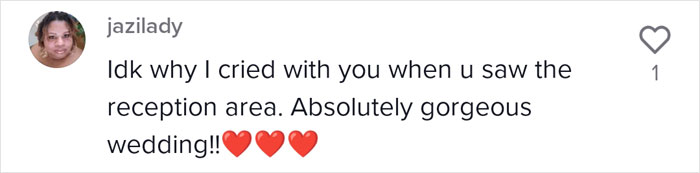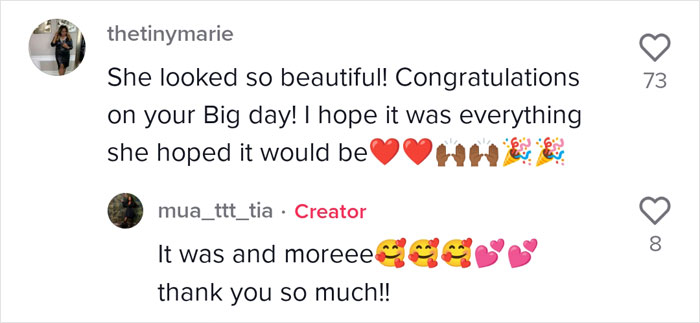 “I love the girls that stick to their roots,” Tia wrote in the video’s caption, which, at the point of writing, had racked up more than 1.3 million views and plenty of compliments regarding the bride’s look as a whole. The outstanding amount of praise was a shock to the bride. “I was totally taken off guard. I see myself every day, so it’s not a big deal,” Kadeja told Insider.
