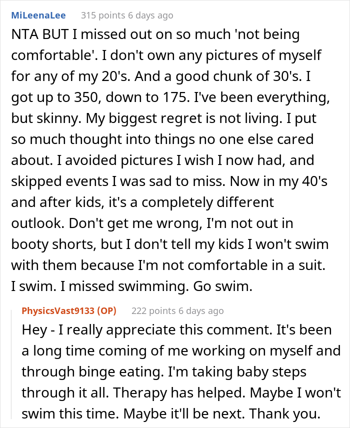 Though there are a variety of reasons a bride may allow her wedding party to pick their own dresses, the most important one in reference to this story is to be sure that the bridesmaids feel comfortable and confident. If you’ve ever worn a dress, or any article of clothing for that matter, that is too tight for you or just doesn’t feel right, it can be an extremely frustrating experience. The bridesmaid even mentioned in a comment that she is currently working through an eating disorder and in therapy to help get better. That is a very difficult situation to be in, and her friends should be supportive and sympathetic.