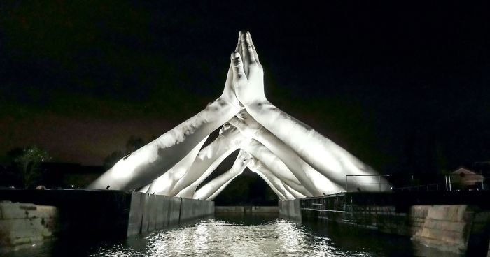 Giant Hands Reaching For Each Other Becomes The Newest Monumental Sculpture In Venice