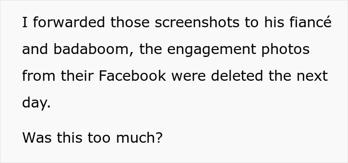 However, those who didn’t skip ‘The Count of Monte Cristo’ in the school curriculum, know well that revenge is like fine wine: the longer it takes, the better it tastes. Stumbling into their former tormentor’s engagement post on Facebook many years later, u/qwertydude1243 decided to do some ‘catfishing’ and see whether the bully will take the bait. And as with the best revenge stories, it would be a shame to spoil the juiciest parts, wouldn’t it?