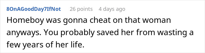 of course u love it the OP got revenge and saved someone from a terrible relationship all in one go.