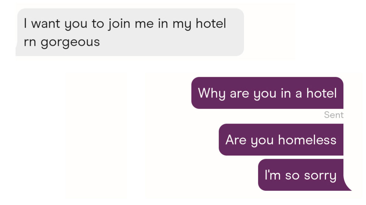 Technology promised to solve our problems, but it seems to make a lot of them worse. Take dating. How cool it was that we could "meet" and flirt with five, twelve, thirty-seven, even a hundred people on the internet without having to step our foot outside, we thought—for maybe an evening or two. But ask anyone who is actively swiping, and they'll tell you it's not that simple. The subreddit r/Bumble is dedicated to one of these apps, and it's full of screenshots its users took of all the bizarre bios and painfully dry conversations they go through on a regular basis. These pictures reveal what online dating really looks like behind the filters.