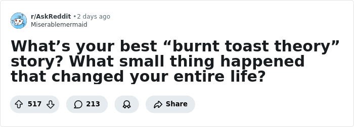 “My Life Would Be Different”: 50 Unexpected Moments That Convinced People That The ‘Burnt Toast Theory’ Is Real