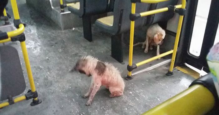 He carried the shivering doggies aboard a bus and offered them a free ride