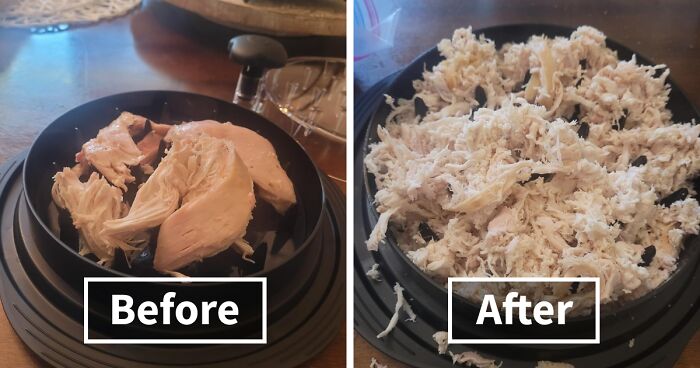 "I got a chicken shredder after seeing it on tiktok and I love it. It’s just a circle with a top, you put the chicken in and turn it. I can shred multiple pounds of chicken within a couple minutes, and it’s easier to get smaller or larger pieces by shredding longer/shorter times. And I love using an instant pot for cooking chicken, like for enchiladas, bbq chicken, etc" - alexandria3142