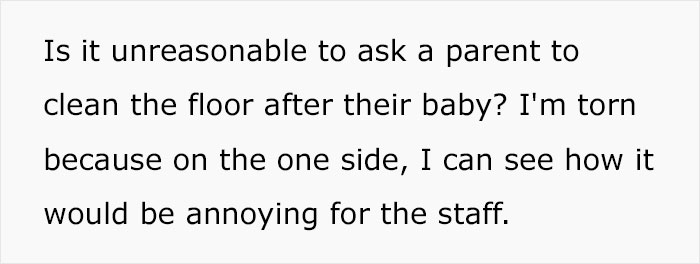 Recently, a mom wondered if the staff at a “family-friendly cafe” were unreasonable for asking her to clean her baby’s mess