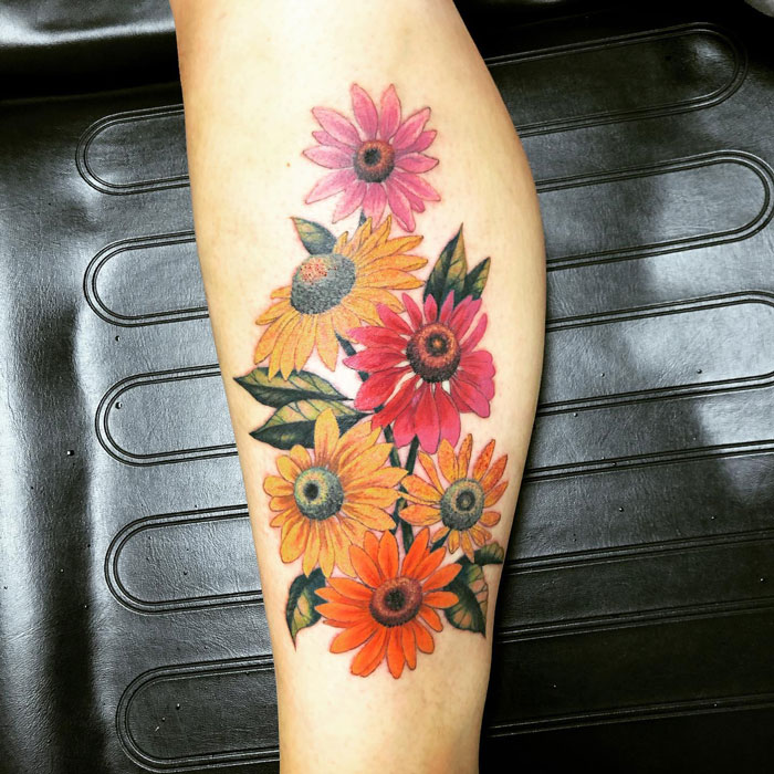 Colourful Plant Calf Tattoo