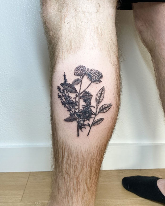 Nettle And Bee For The Left Calf, Yarrow And Ladybug For The Right