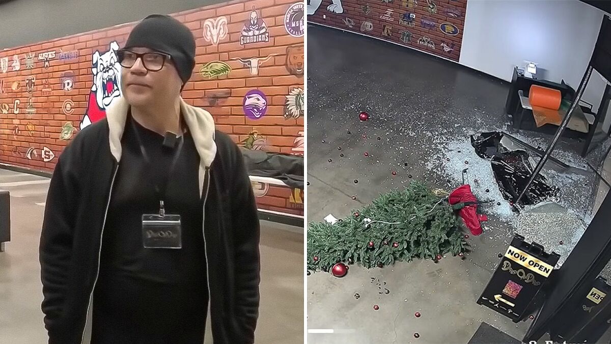 Security footage obtained by KSEE shows two masked, hooded individuals breaking into the store, only to realize there are noitems to take. One of them throws their arms up in disappointment while looking at the practically empty shop.