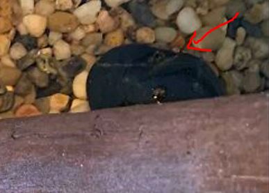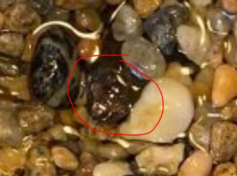 Not at all sure because it's out of focus, but look on the right of the topmost of the big black stones - one of the little black "pebbles" next to it seems to have toes. EDIT: Nope, guessed wrong. Solution is in the reddit thread where the picture has a better resolution. On here it's really just a wild guessing game; but look at the picture here: https://imgur.com/2GGZDOj