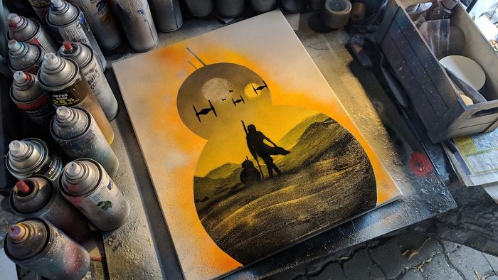 Street artist RBSprayart spray paints STAR WARS fanart in minutes before your eyes. Check this out.
