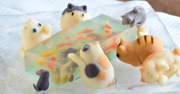 Candy Cats Trying To Catch Goldfish Stuck In Jelly Created By Mother-Daughter Duo