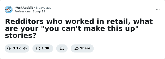 To find out how this conversation started in the first place, we reached out to Reddit user Professional_Song419, who invited retail workers to share their "you can't make this up" stories.