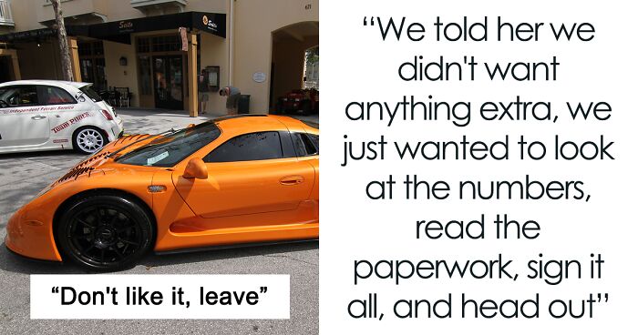 It’s not that hard, actually, as Reddit user dumpster_fire_15’s example shows. She and her husband were ready to buy a car, but the finance office tried to offer add-ons and then presented them with a deal that was not discussed prior and the couple didn’t have time to argue. After they declined to pay an extra fee, the finance person suggested that they leave and they gladly did so.
