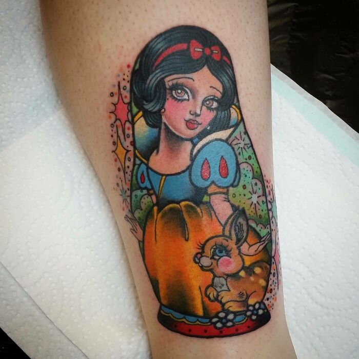 "Disney Snow White babushka tattoo by Amie Lee 13 Shinko Tattoo Brisbane Australia."