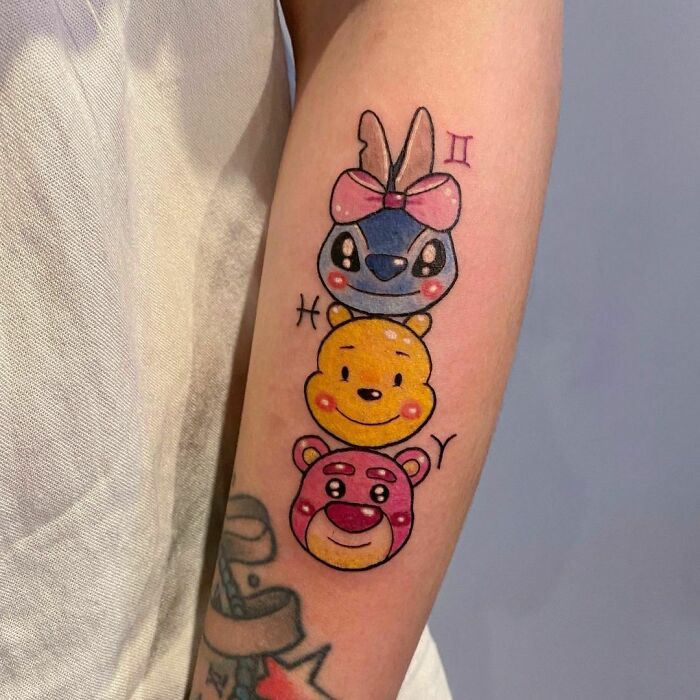 Stitch, Winnie The Pooh And Lots-o'-Huggin' Bear Tattoo