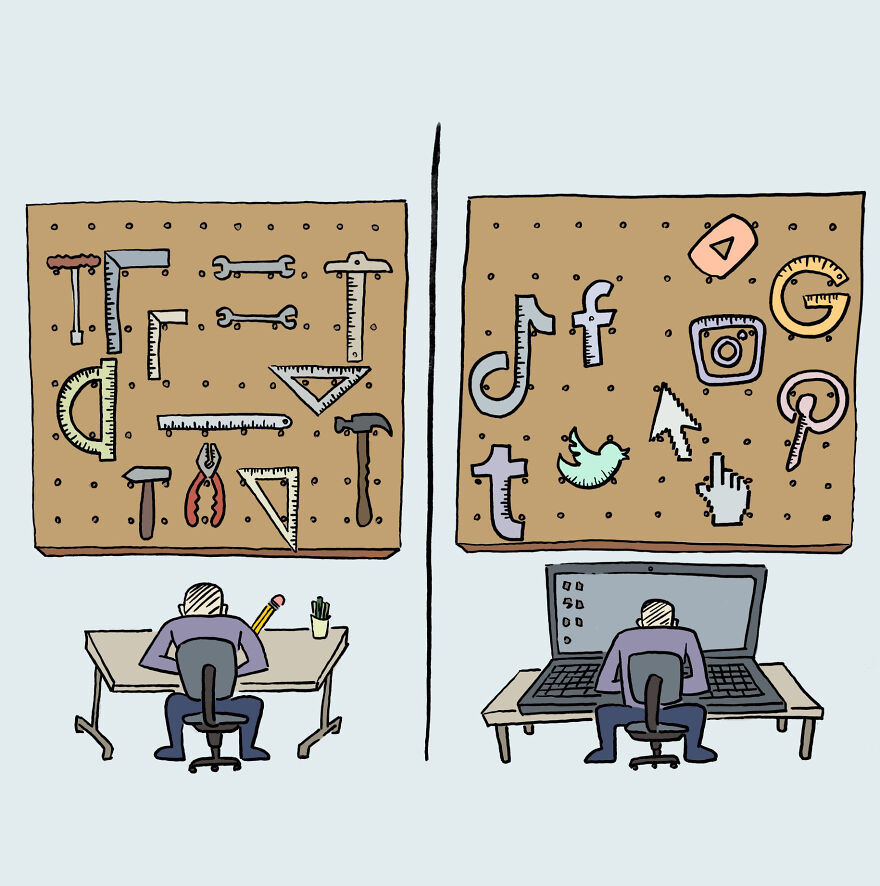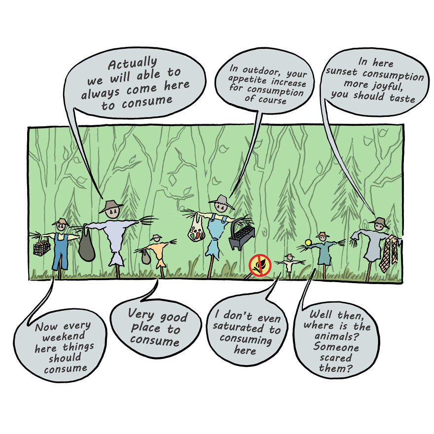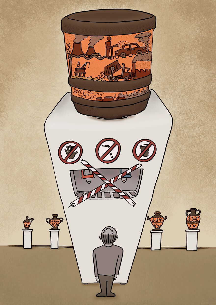 I am fine! I’m very happy that I have been productive in drawing cartoons lately and that I have reached a large crowd thanks to Bored Panda. I am a cartoonist and designer from Izmir, Turkey. I originally had an academic education in stage design and I have been designing sets/costumes for a few theater companies for about 10 years. I also compose instrumental acoustic guitar melodies. I share my own tunes on the page of my music project called “Açık Hedef”. (You can listen to my songs on the project's Instagram, YouTube and Soundcloud pages.)
