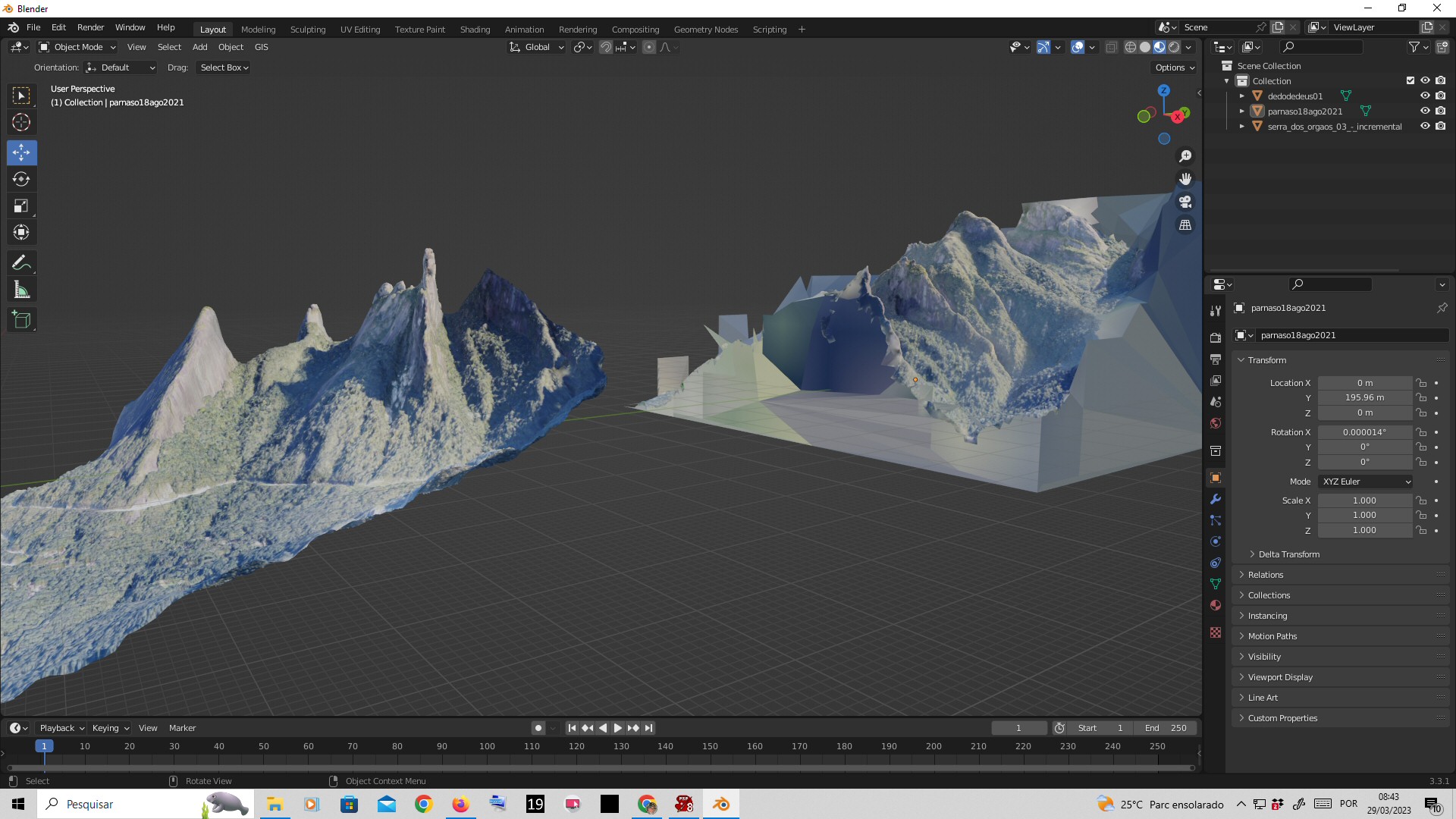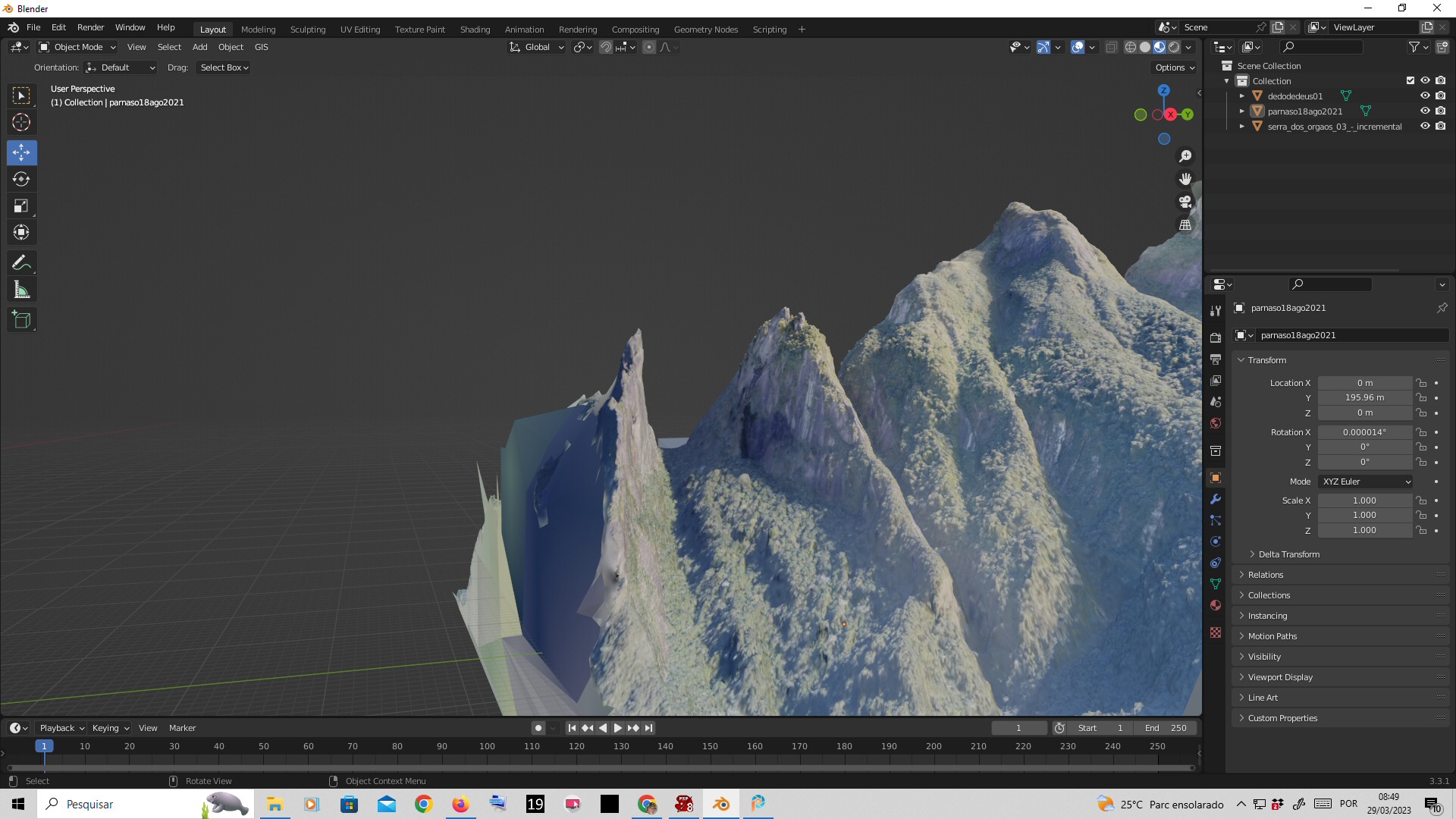Amazing coincidnce. Just yesterday I was working on a computer 3D model of this very mountain on my computer. This (the left one) is known by the name Dedo de Deus (God"s Finger), a 1.700 meter-high mountain in the state of Rio de Janeiro, Brazil (cities Guapimirim and Teresopolis). It is stunningly well portrayed above. My deepest congratulations to this artist.