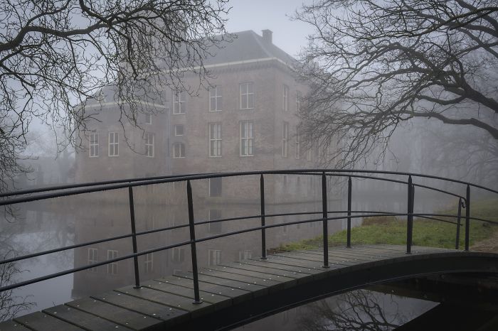 The town I live in (Hilversum) is surrounded by lovely old villages. Within a radius of 50 KM you can find about 50 castles. On a foggy day, after work, I decided to photograph Castle Loenersloot, built around 1250 A.D..