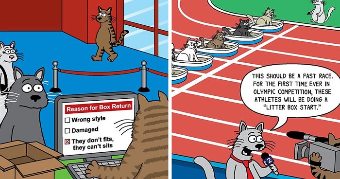 With a career spanning over 20 years and a loyal Instagram following of 77.3 thousand, Scott’s single-panel comics turn everyday cat antics into just genuinely fun moments. He’s turned his love for pets into a niche, proving that a great joke can outshine even the most intricate drawings. So, if you’re ready for a daily dose of purrspective, scroll down below, Pandas!